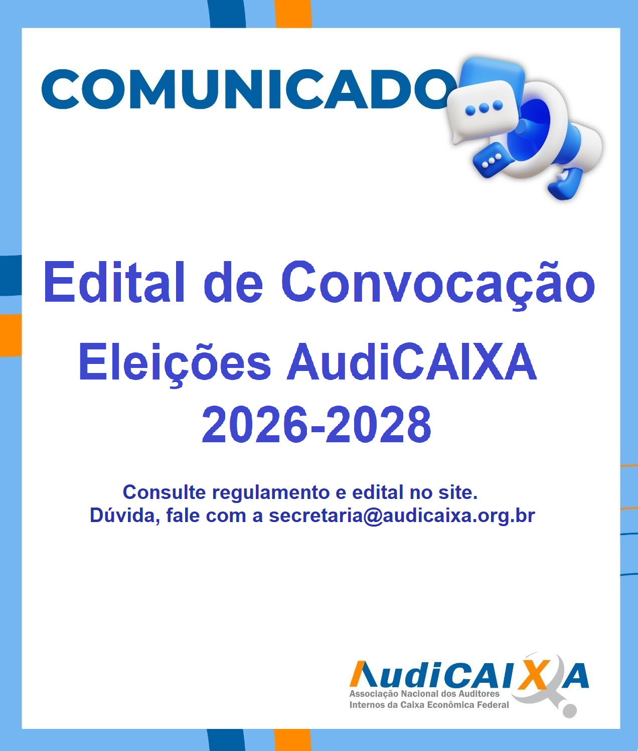 Telefone: (61) 3044-1650 secretaria@audicaixa.org.br Redes Sociais: